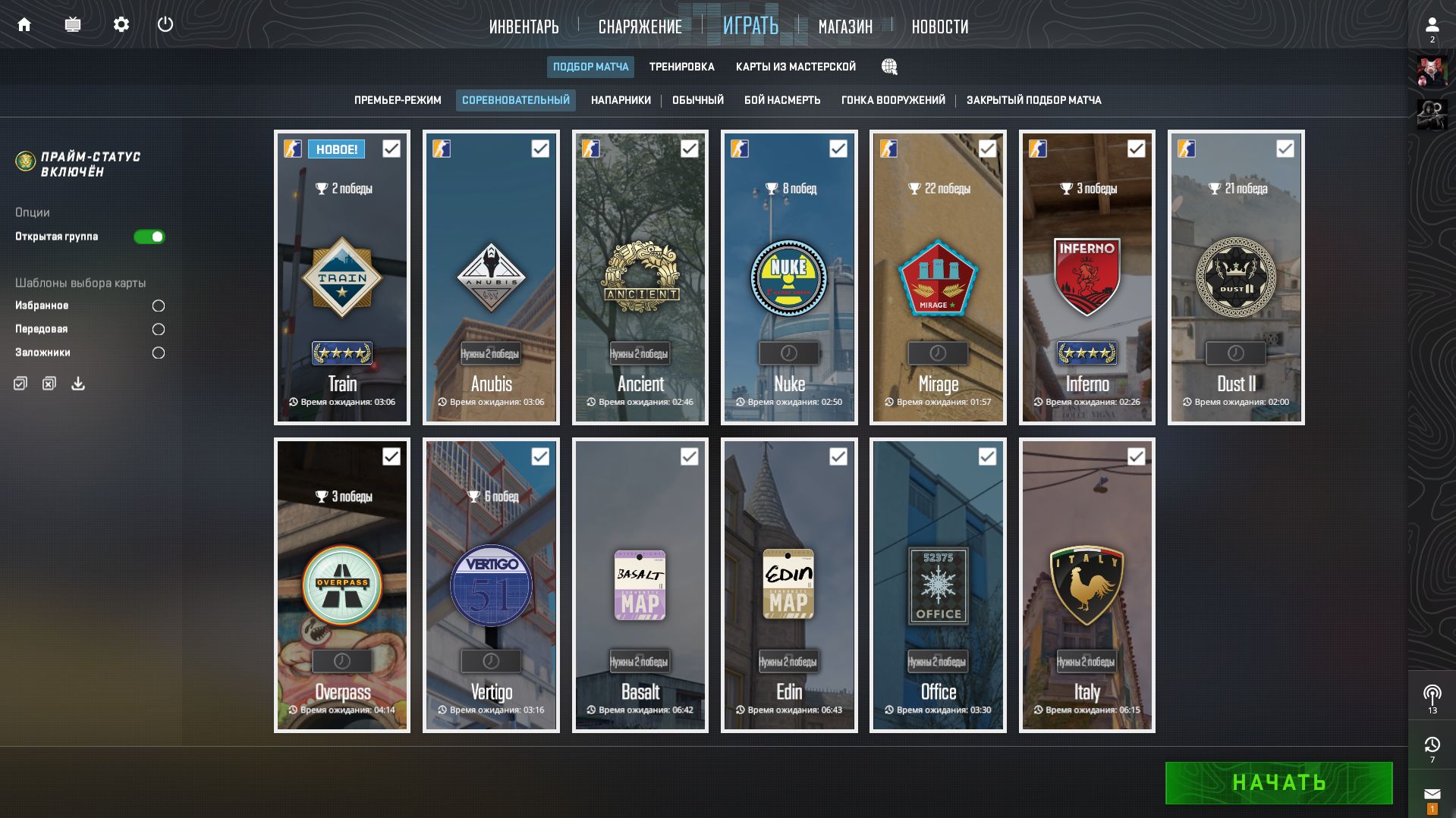 CS 2 Prime - Premier 18,959 + GOLD NOVA 3