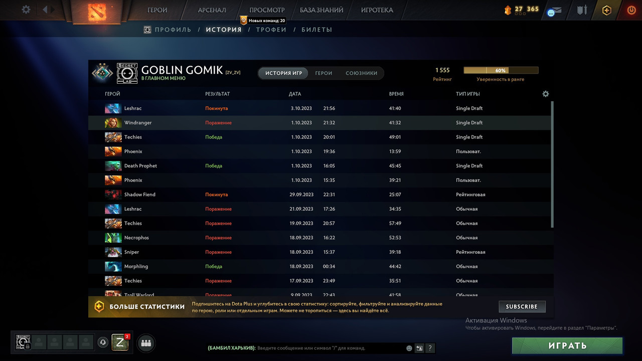 Dota 2 - 1555 MMR (РЫЦАРЬ)