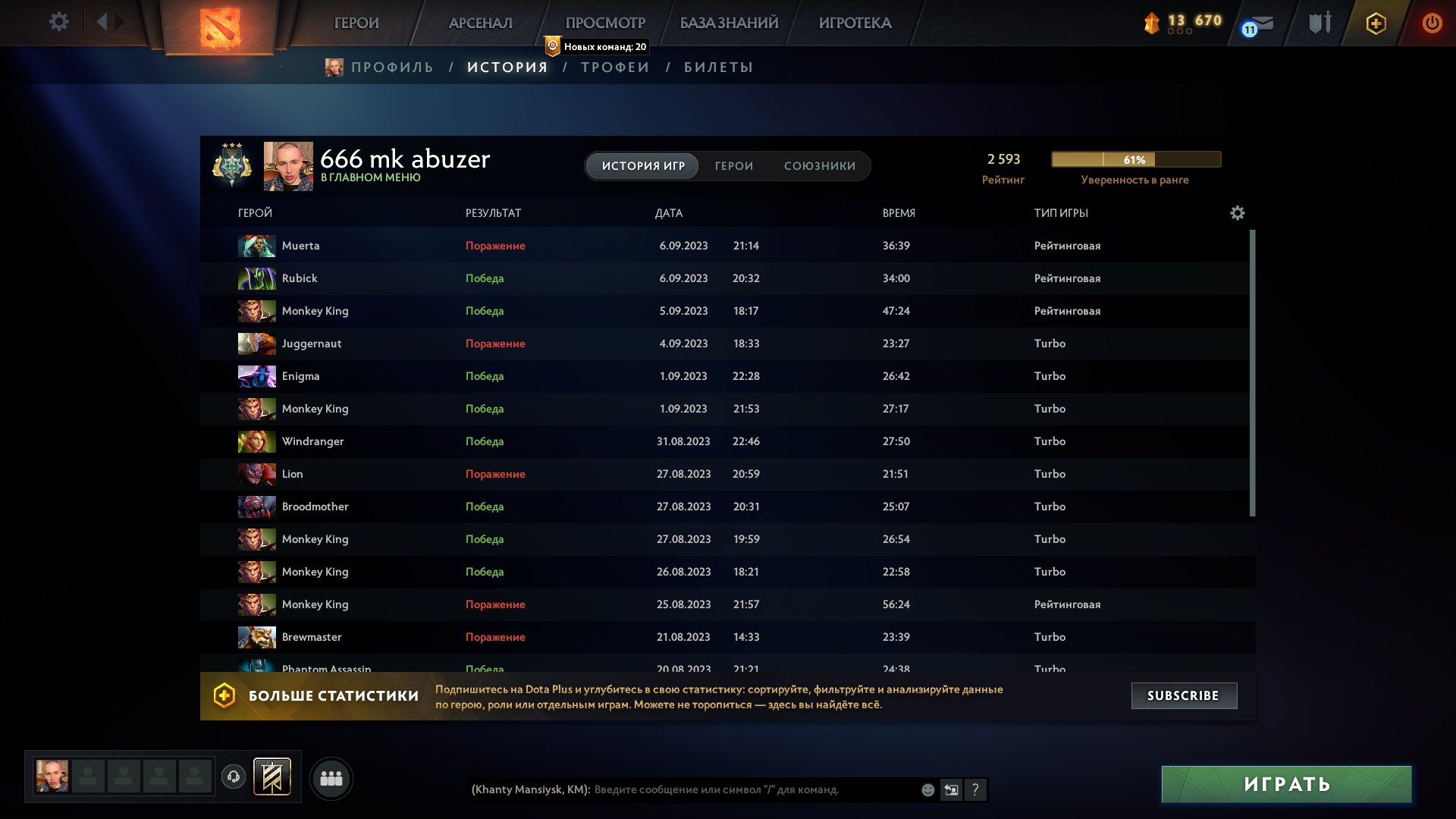 Dota 2 - 2593 MMR (ГЕРОЙ)