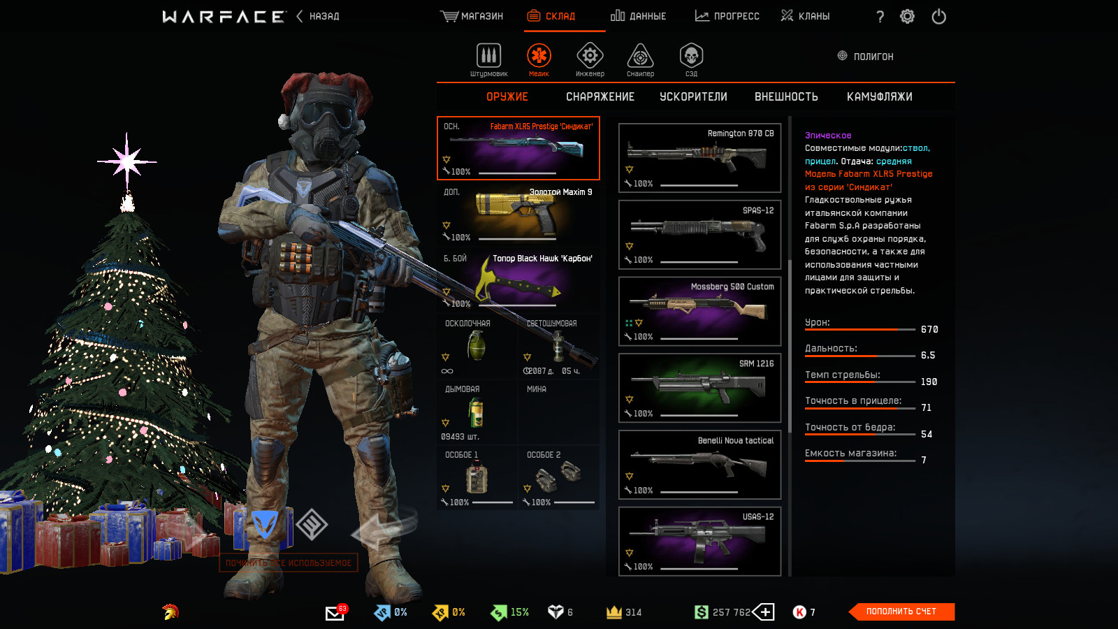 На медика: Fabarm XLR5 Prestige, USAS-12, Mossberg 500 Custom