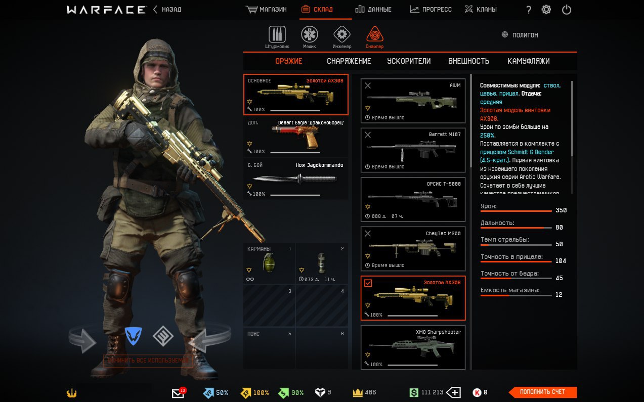 Warface - с. Альфа; 1 Золото; 3 Дона, Золотая AX308, Beretta ARX160