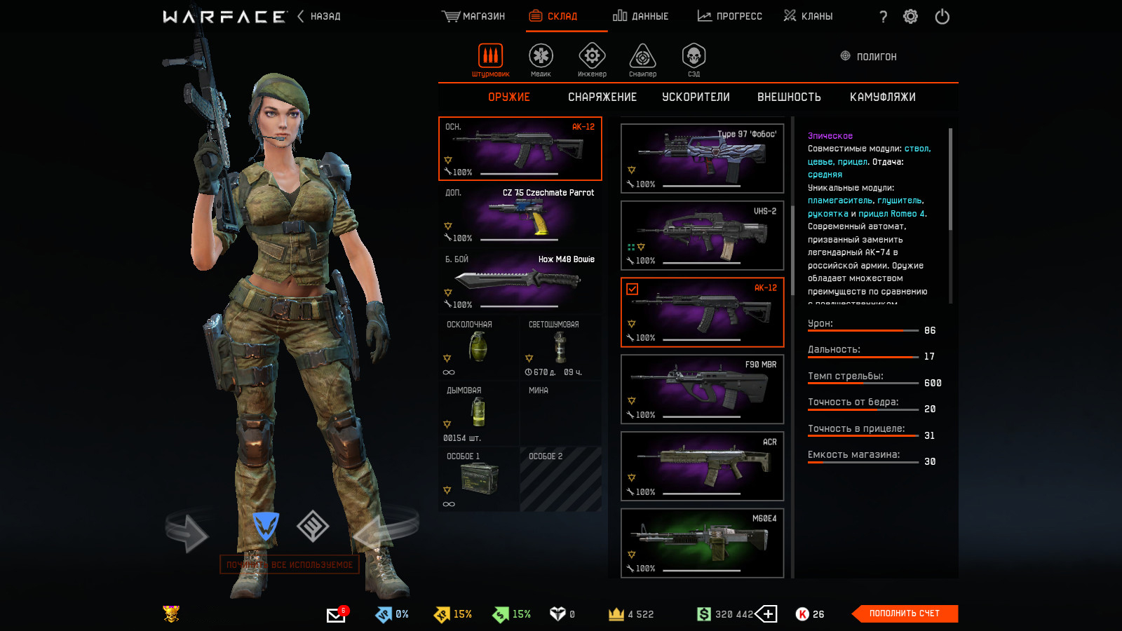 Warface - с. Альфа, 2 Золота, 15 Донов; АК-12, Золотой Micro-Roni