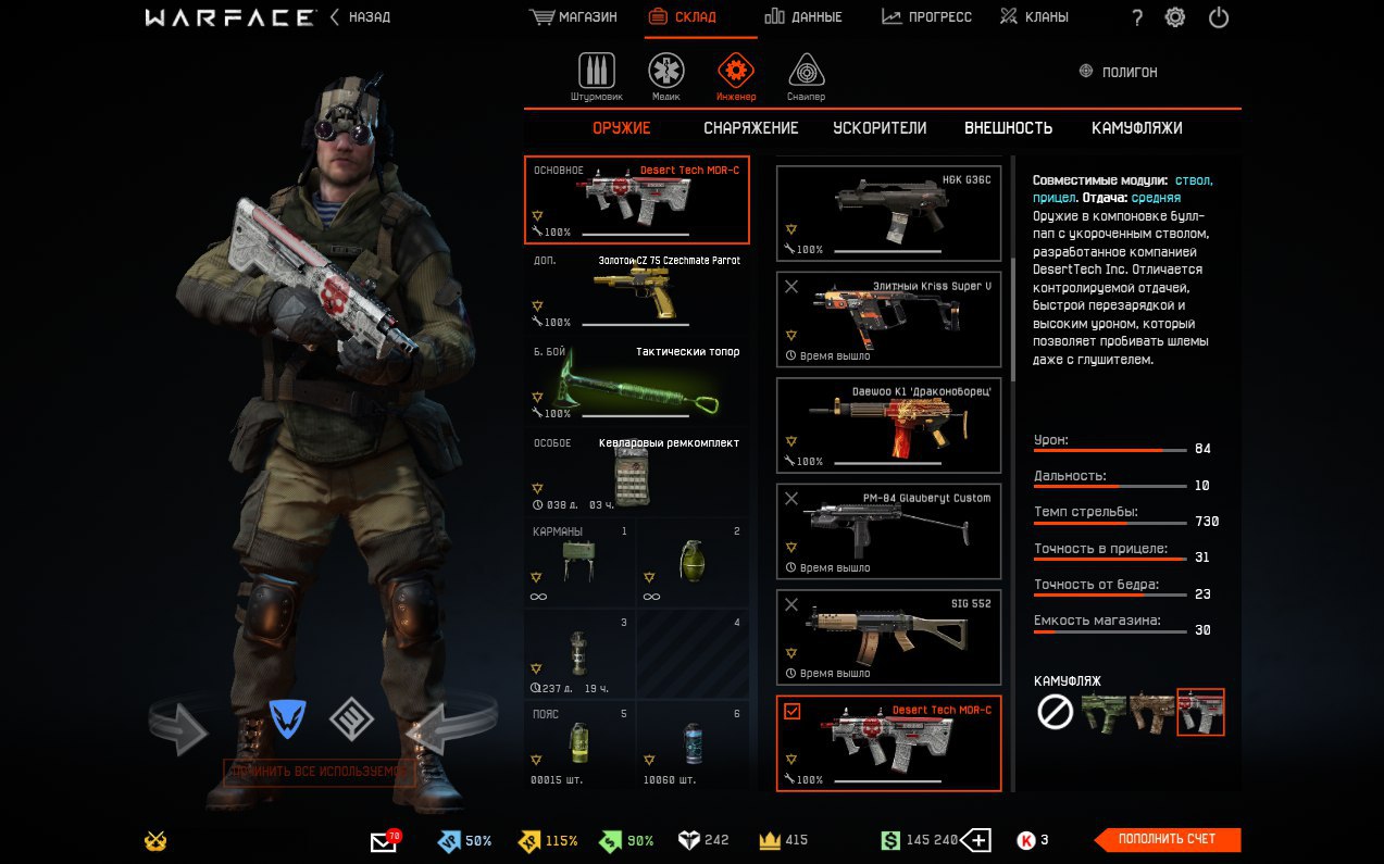 В кооперативном режиме вас ждут интересные задания, для прохождения которых понадобится не только умение метко стрелять, но и отлаженное командное взаимодействие. В разнообразных PvP-режимах игроки смогут выбрать класс своего бойца и ощутить настоящий накал страстей в увлекательных баталиях. Купить аккаунт Warface на площадке проверенных продавцов ACCDEALS.RU