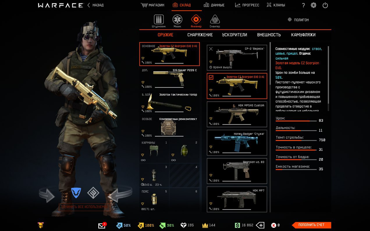 Warface - c. Браво, 3 Золота, 11 Донов; Золотая M14 Crazy Horse