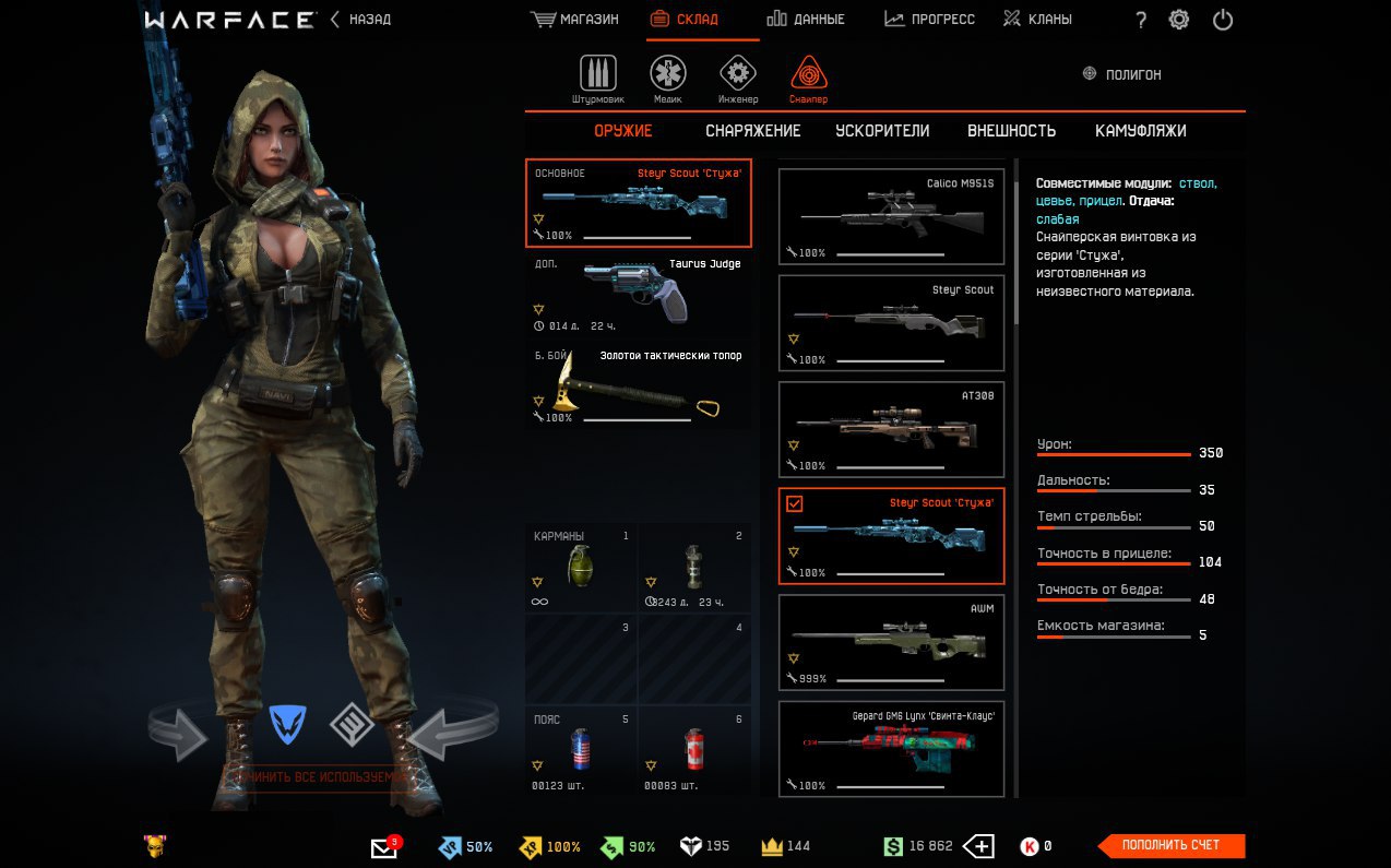 На снайпера: Золотая M14 Crazy Horse, Steyr Scout 'Стужа', Calico M951S