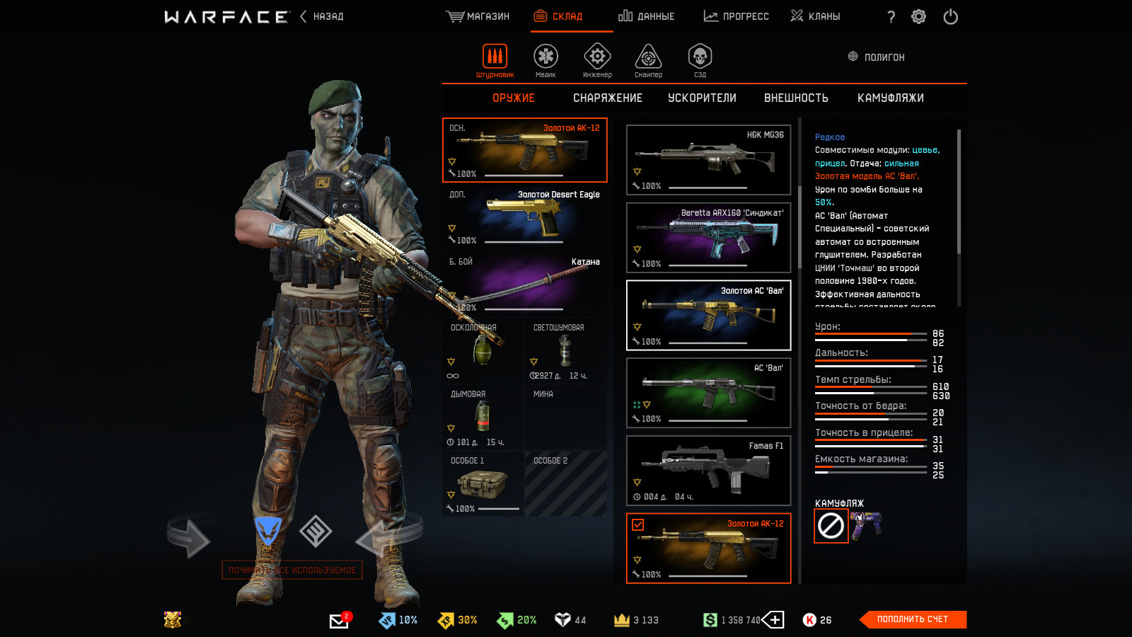 На штурмовика: Beretta ARX160 "Синдикат", Золотой АК-12