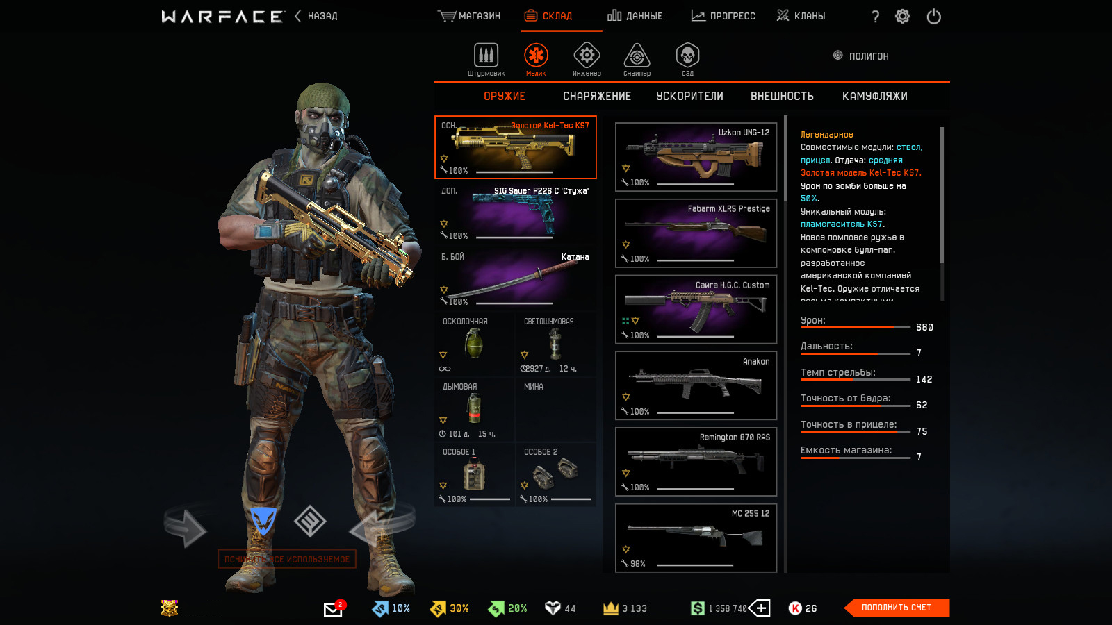 На медика: Uzkon UNG-12, Fabarm XLR5 Prestige, Золотой Kel-Tec KS7