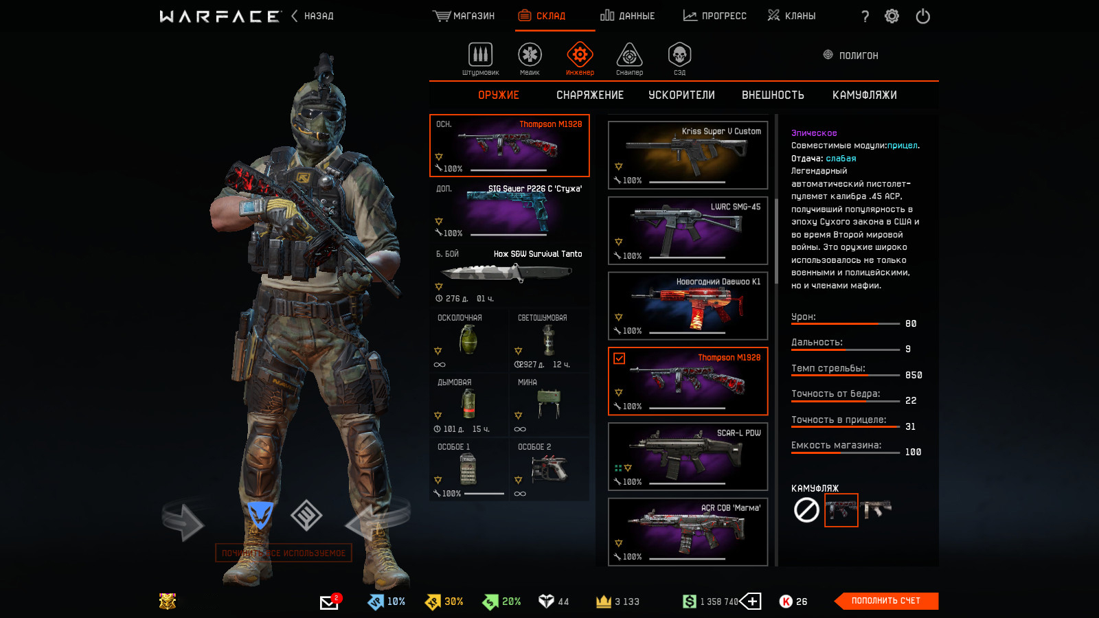На инженера: Kriss Super V Custom, SCAR‐L PDW, ACR CQB «Магма», LWRC SMG-45, Thompson M1928