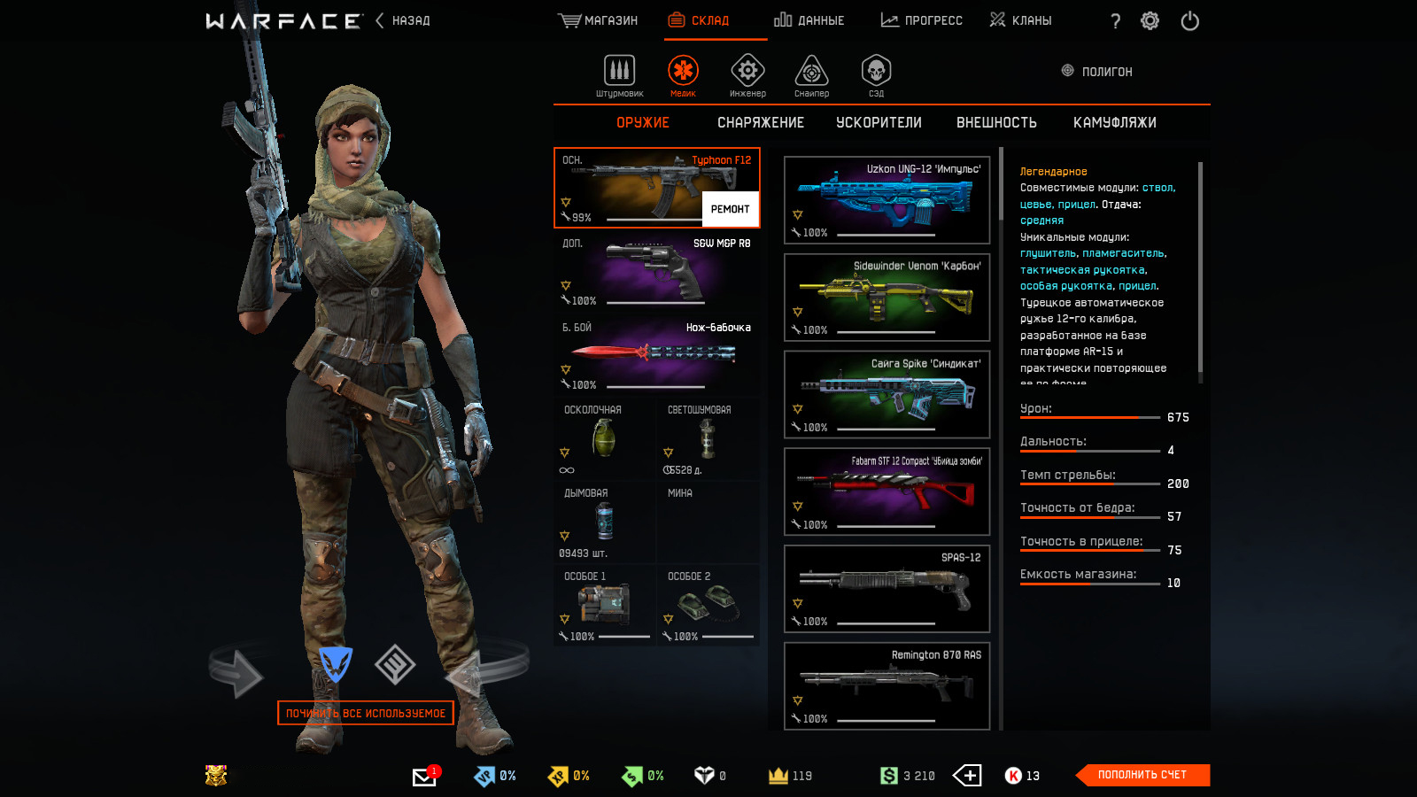 На штурмовика: Beretta ARX160, АК «Альфа», ПКП "Печенег", Stoner LMG A1, Type 97 "Фобос", АК-12, MSBS Radon «Карбон»